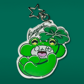 This acrylic keychain features a clear base design. The back side shows a sweet smiling expression.